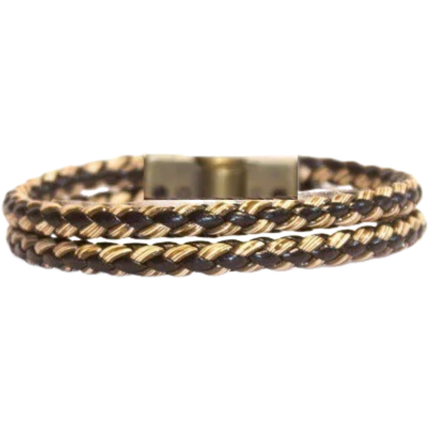 Pulseira Trançada Couro Preto e Bege